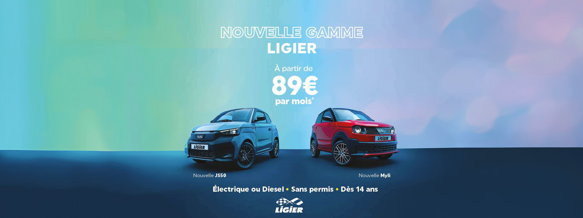 Offre à particuliers non cumulable en Location avec Option d’Achat sur 24 mois et 20 000 km dans le réseau Ligier Group participant, valable jusqu’au 31/12/2025 (date de souscription du dossier de financement faisant foi), dans la limite des stocks disponibles.
